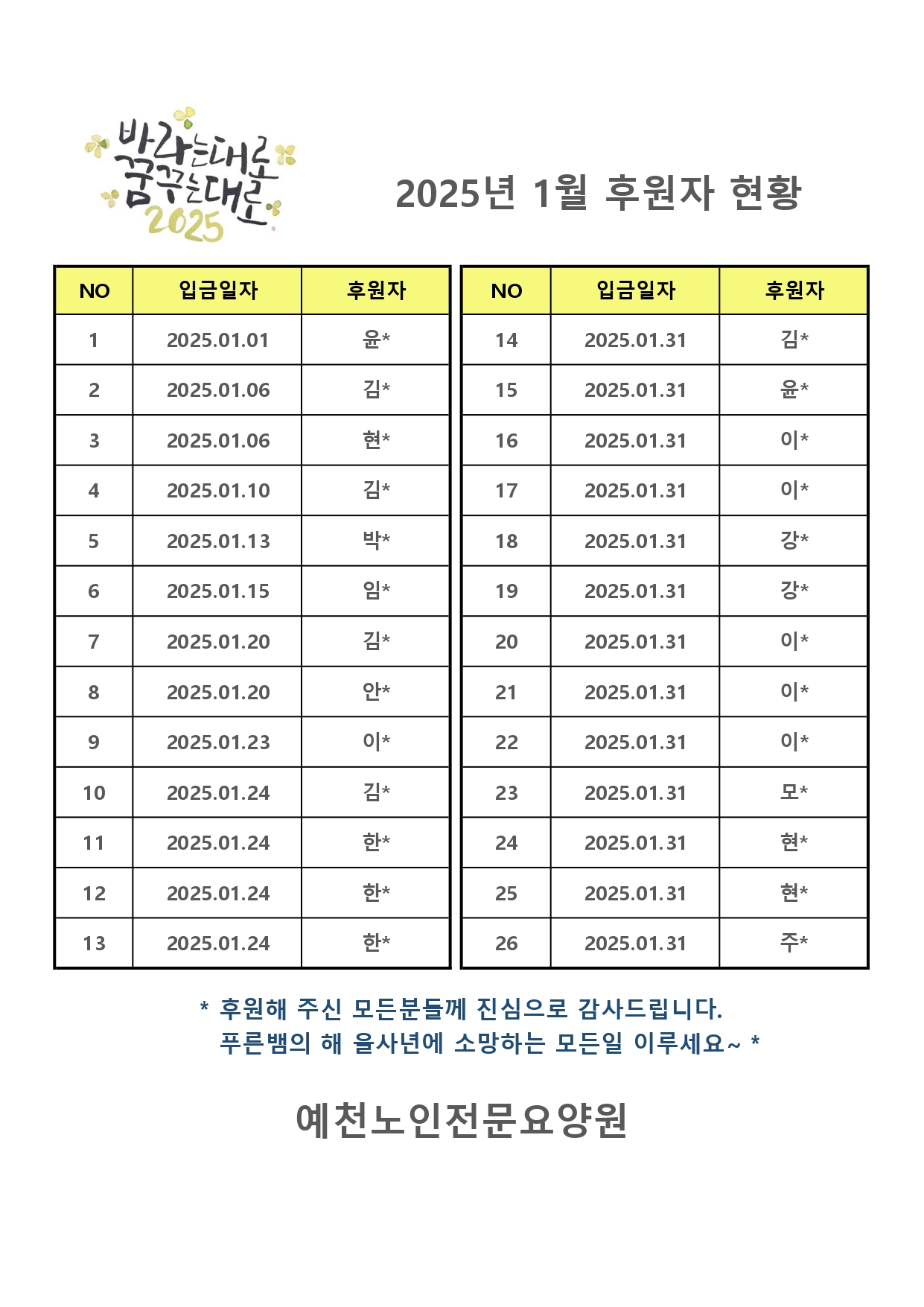 2025년 1월 후원금 현황입니다.